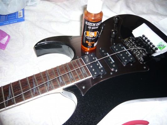込ませて、ネックを拭きました。(レモンオイルなどもありますよね)